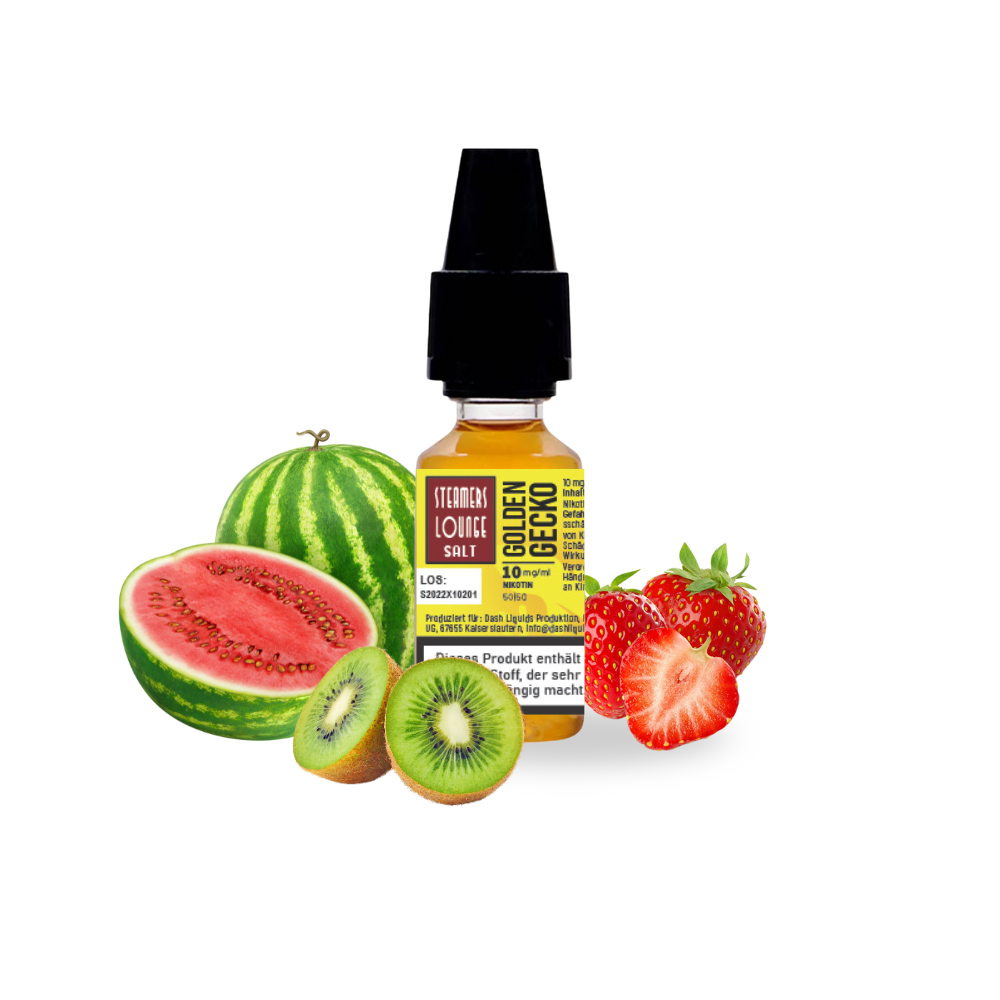 A fruity and exotic blend of juicy watermelon , aromatic kiwi , and sweet strawberries , rounded off with secret ingredients that give this liquid its unmistakable flavor. Fruity, harmonious, and intense in flavor—it's not without reason that it's one of Steamers Lounge's absolute bestsellers .
