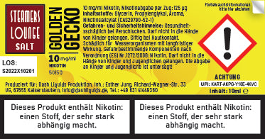 70% Vegetable Glycerine (VG), 30% Propylene Glycol (PG), natural and nature-identical flavors based on propylene glycol, nicotine salicylate