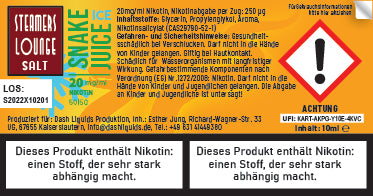 Available in: 10 mg/ml and 20 mg/ml nicotine