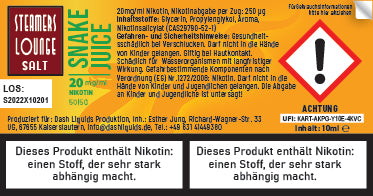 Erhältlich in: 10 mg/ml und 20 mg/ml Nikotin