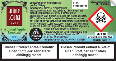 Erhältlich in: 10 mg/ml und 20 mg/ml Nikotin
